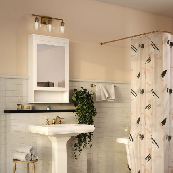 $79.00Clear shades with a softened diamond silhouette and an elegant gold-toned frame brings modern appeal to the Adalyn 3-Light Vanity Light. The geometric clear glass shades deliver elegant, bright illumination to bathrooms in modern craftsman and farmhouse settings. Mount the light fixture with the glass facing up or down for more design flexibility and the proper amount of illumination so that you can easily get ready for whatever your day or evening brings.
