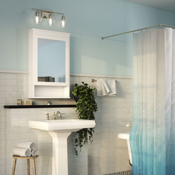 $79.99Clear shades with a softened diamond silhouette and an elegant nickel-toned frame brings modern appeal to the Adalyn 3-Light Vanity Light. The geometric clear glass shades deliver elegant, bright illumination to bathrooms in modern craftsman and farmhouse settings. Mount the light fixture with the glass facing up or down for more design flexibility and the proper amount of illumination so that you can easily get ready for whatever your day or evening brings.